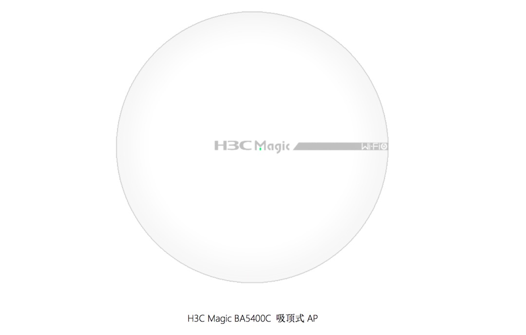 H3C Magic BA5400C 是新华三智能终端有限公司推出的 5400M Wi-Fi 6 吸顶式 AP。采用最新 802.11ax 无线技术,采用 4T4R 架构,支持 160MHz 大频宽,整机无线速率最高可达 5400Mbps。